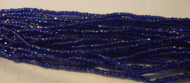Montana Blue Silver Lined 3 cut beads. Sold by the hank.