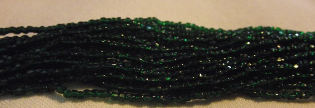 Emerald Transparent 3 cut beads. Sold by the hank.