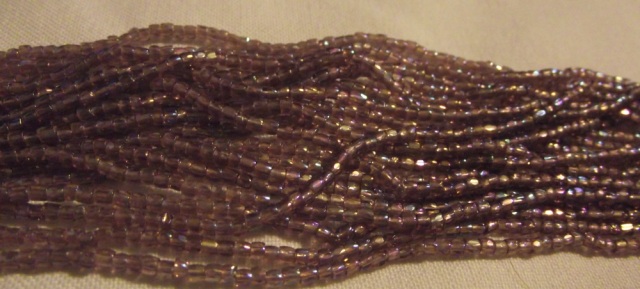 Light Amethyst AB 3 cut beads. Sold by the hank.