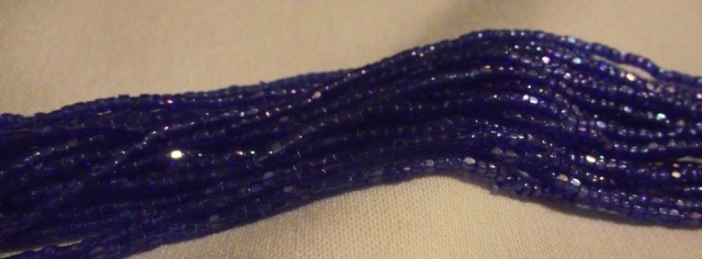 Cobalt Blue AB 3 cut beads. Sold by the hank.