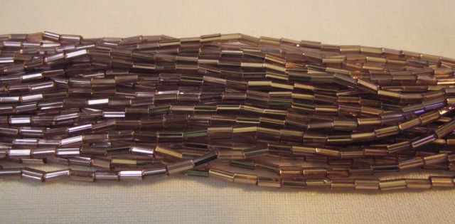 Light Amethyst bugle beads. Sold by the hank.