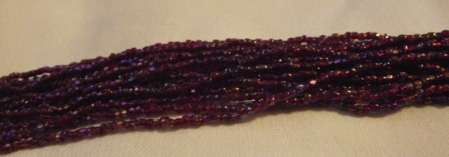 Dark Garnet AB 3 cut beads. Sold by the hank.