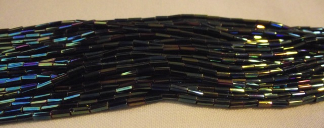 Green Iris bugle beads. Sold by the hank.