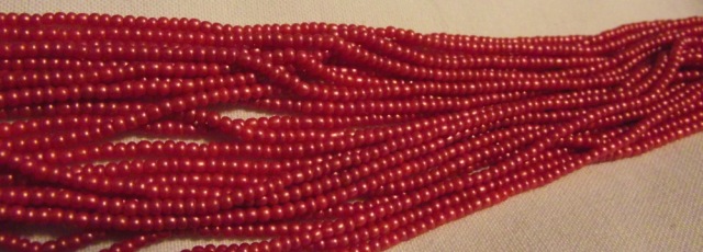 Dark Red Luster seed beads. Size 11. Sold by the hank.