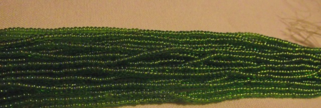 Light Green Transparent AB seed beads. Size 11. Sold by the hank.