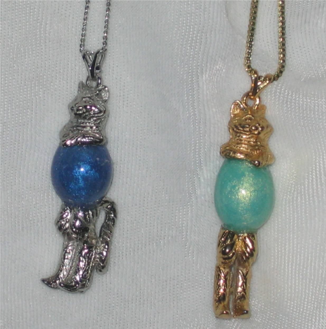 Carson the Cowboy Cat. He has a cat head and cowboy boots on his feet. Does not include the egg, finding or chain. Available in gold or silver plated.