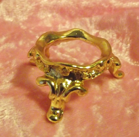 Heavy gold plated stand. Holds turkey, duck or chicken size egg. 1 inch across and 3/4 inch tall.